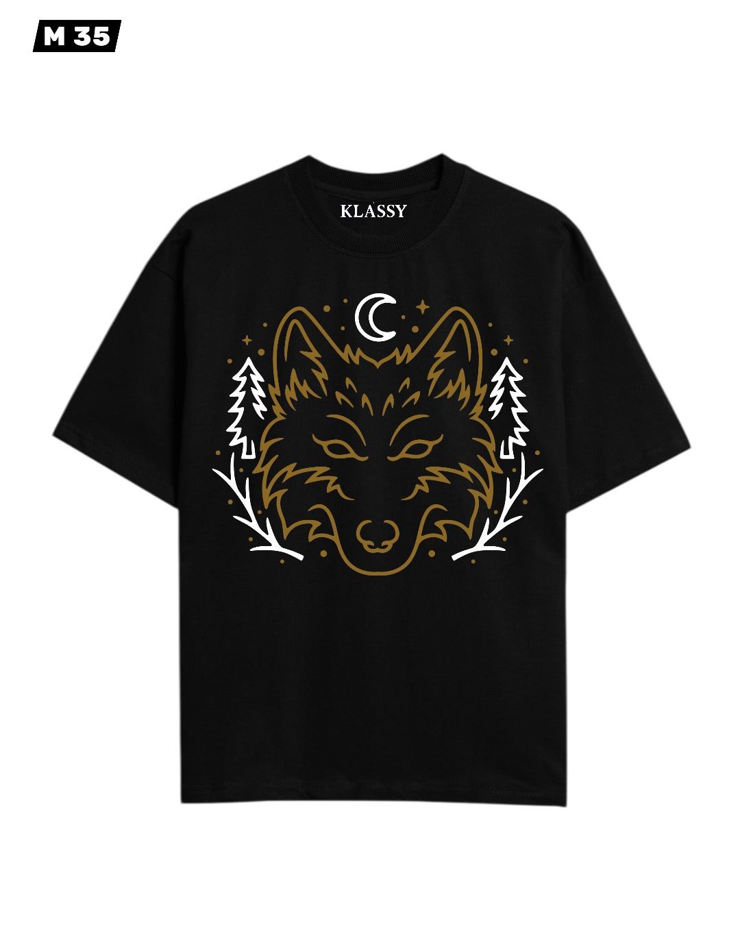 KlassyLife Black Wolf Art T-Shirt – Trendy Oversized Fit
