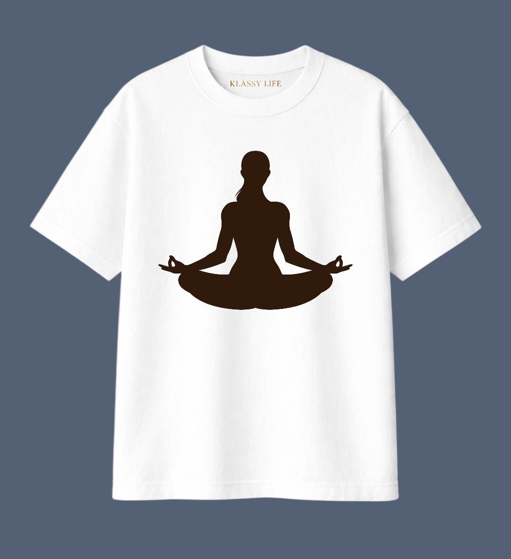 KlassyLife G21 Zen Meditation White Oversized T-Shirt – Minimal Yoga Design